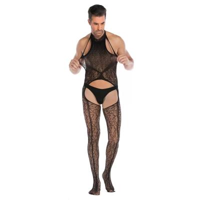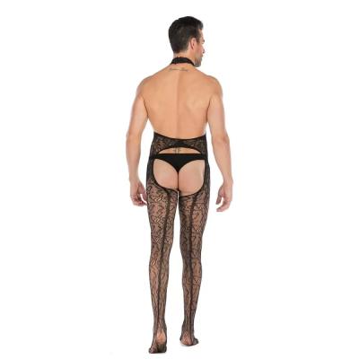 Seksi Askılı Sırtı ve Ağı Açık Desenli Erotic Bodystocking Crossdresser Erkek Vücut Çorabı