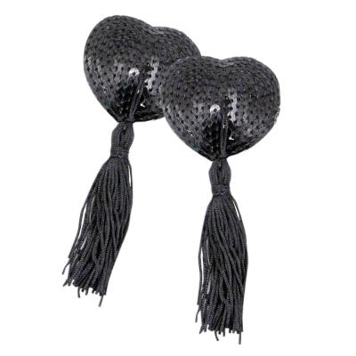 Gıdıklayıcı Püsküllü Yapışkanlı Mor Parıltılı Kalp Şeklinde Meme Ucu Gizleyici Göğüs Aksesuarı
