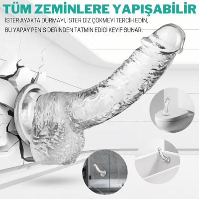 MYST COLOR Dildo Realistik Jel Dokuda Testissiz Ultra Yumuşak Şeffaf Yapay Penis 20 CM