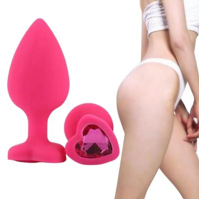 Parlak Kalp Şeklinde Gül Kırmızı Mücevher Taşlı Silikon Pembe Anal Plug