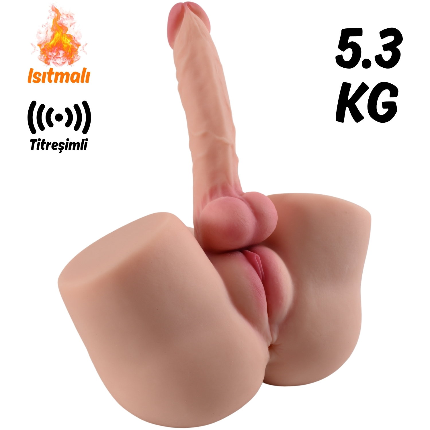 Zaya - Anal Vajina Girişli 19 CM Yapay Penisli Isıtmalı Titreşimli Realistik Kalça Mastürbatör Trans Manken 5.3 KG